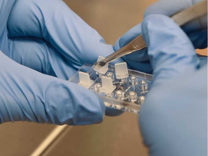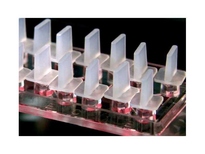 搭配微量分注器使用于兩側(cè)60 μL儲液槽中制造出化學(xué)物質(zhì)的線性濃度梯度,此時嵌入在儲液槽中間觀察管道基質(zhì)膠中的細(xì)胞即處于一穩(wěn)定的線性濃度梯度培養(yǎng)環(huán)境中。
