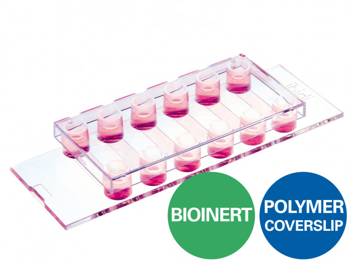 ●µ-Slide 0.4mm高度 六通道培養(yǎng)載玻片,具有非粘附的鈍化生物惰性表面